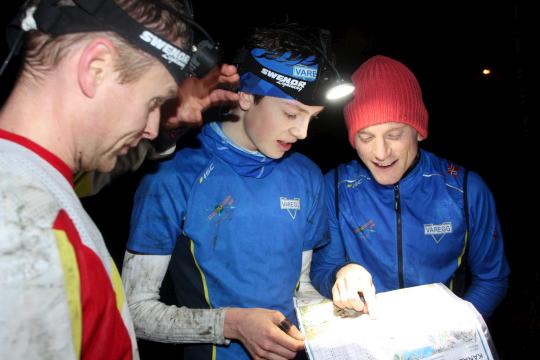 Kveldens stunt 1: Calle Macody Lund var offensiv før start. Det ble bomming på førsteposten, men Calle klarte å stemple først og snek seg ut og løpte på til 2.posten. Han fikk kanskje 20 sekunders forsprang og teten med Vegard i spissen ble veldig overrasket da de etterhvert så Calle foran seg! Sjekk bildet der Calle forteller sin røverhistorie. Calle må dessverre etterhvert bryte pga trøbbel med batteriselen.